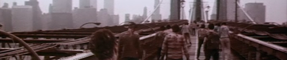 Remember the opening scene of Zombi 2 (aka Zombie) where the deserted ship drifts into New York Harbor and is boarded by the harbor patrol? Yeah, the patrolmen come under attack from the zombie on board. By the end of the movie we return to NYC to see zombies flowing into the city. Probably the coolest part of the movie despite the normal flow of traffic on the street level of the bridge. Well something similar happened. And it took 7 years!
